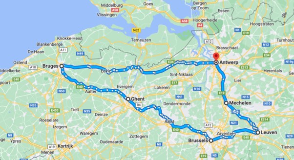 This guide is meant to be walked in as many sessions as you have available. The relevant streets or sites are given in bold. To focus attention on the environment that Thomas More saw and lived in, we recommend the traveller to enteronly a few places, which are underlined in the guide; a summary of those few places is given here.