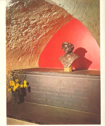The fourth stage of More’s geography is obviously his last pilgrimage which would take him to well-trodden places. At the beginning of April 1534, he went on pilgrimage to Our Lady of Willesden. On Sunday 12 April he listened to a sermon at St. Paul’s Cross, outside the cathedral, after which he went to visit his adopted daughter Margaret Giggs and her husband John Clement at More’s former house in Bucklersbury Street. Along the way he received the summons to take the Oath of Succession. He returned that night to stay with his family in Chelsea, and on Monday 13 April he went to the parish church in Chelsea where he went to confession, attended Mass and received Communion. From there he went to Lambeth Palace, where he was put under the custody of the Abbot of Westminster and on 17 April was taken to the Tower whence he was taken for trial in Westminster Hall on 1 July 1535, only to be returned to the Tower until his execution on 6 July 1535.